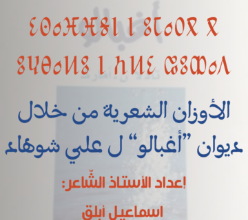 أكشوم ن تمازيغت س ؤسلمد غ ؤسݣاس ن 2003 د تبادوت غ 2006 _ مقار ن ؤر توفي تِيݣْضِيفِينْ غ ؤبريد نس، تاف ن ݣيسنْ ئِمْشْكِيلْنْ _ ئفكا تانايين ياضنين ف ئمصِيريضْنْ ن تْغْنْسَا د تَانَّاييِن نس. تّْيَارْمْنْتْ تانايين أَنّْ زوارنين ئلينت غ ؤفوس، فاد راد رژمنت ئݣورا أر ئغربان ئ تووري ن ؤفران ئدوسن. أود ليغ ئشيض ما نّْ كيسنت ترسال ن تمازيغت مَّاغْنْ ئد بو ؤسنفلول أدْ دْ سَّاشكين تيرا نسن د ما ئتياوسكيرن غ ؤمدور أد. ؤُرْ نْتُّو ئس د ݣوتن ئِمَارَانْ ( كتَّاب) ن تمازيغت غ ئعريمن. ؤفان د تانكرا تادلسانت ن تمازيغت غ تامراوت ( العشرية) أد ئݣران. أيلي د ئضين ئِمُوسُّوتْنْ ئماينوتن غ ؤسنفلول أسكلان ؤلا ؤناژور أك باهرا. س ليغ نيت داغ بُوغْلَانْ ئسقسيتن ن ؤفران.