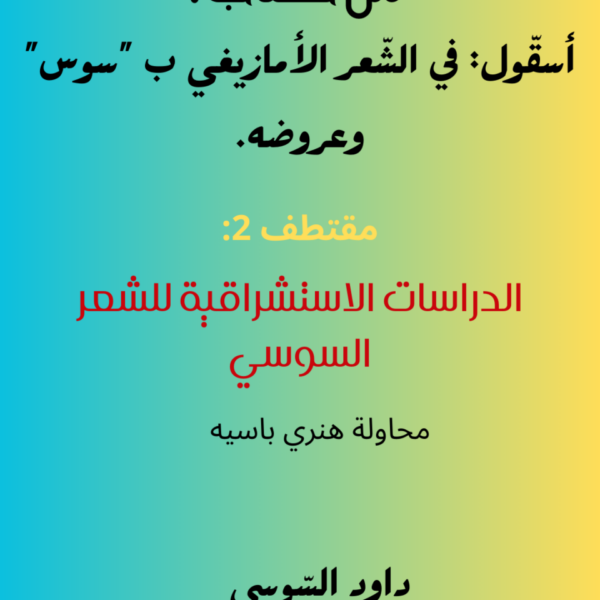 الدّراسات الاستشراقية للشعر الأمازيغي..نموذج باسيهداود السوسي3 مايو، 2024الدراسات الاستشراقية للشّعر الأمازيغي السوسي تمهيد: ... اقرأ أكثر/غر ؤكَار